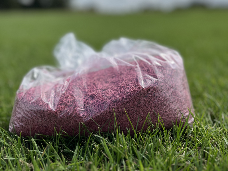 Arrojar semillas de césped rye grass, el cual crece entre el entramado de su variedad de césped ya establecida en su jardín. Con las primeras heladas y el amarillamiento del césped, el rye grass crecerá haciendo que su jardín se vea verde. Para jardines domiciliarios recomendamos resembrar entre 0,5 y 1 kg de semillas cada 10 M2.
